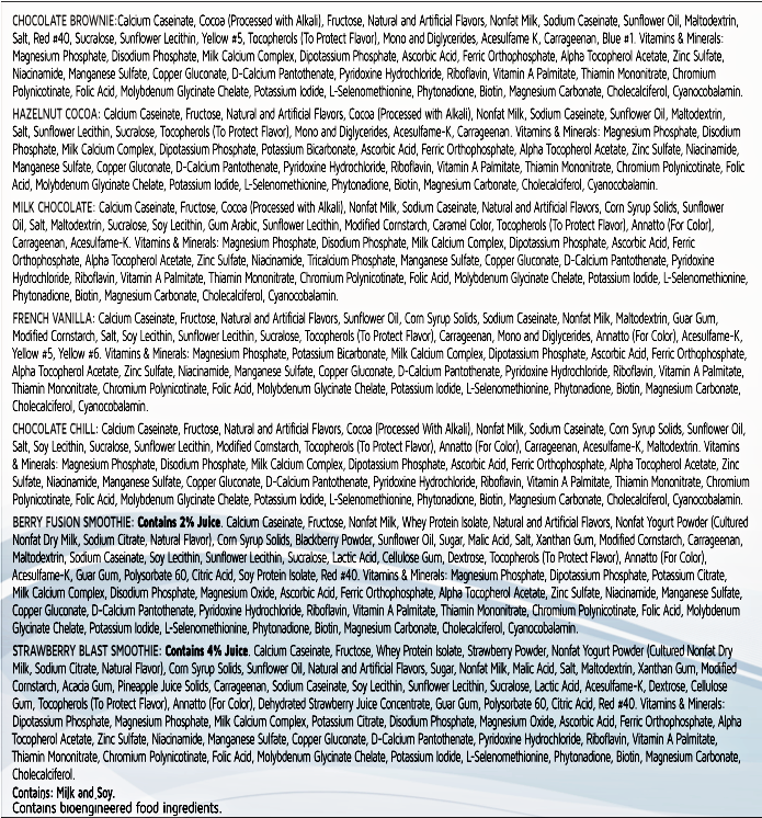 Balanced nutritional profile protein shakes, featuring a different flavor for each day of the week. These meal replacement shakes deliver 15g of protein and only 100 calories each*, providing a convenient and delicious option. Please note that the contents of this Variety Pack may vary occasionally based on availability.